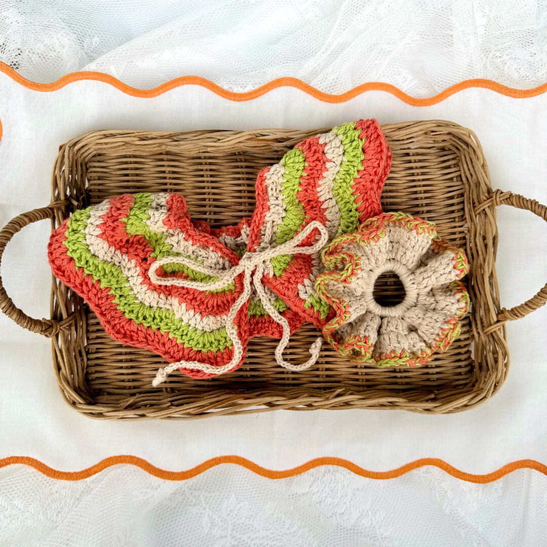 ・ひとつひとつ手編みで制作しているため、サイズ・色合い・編み目に個体差があります。